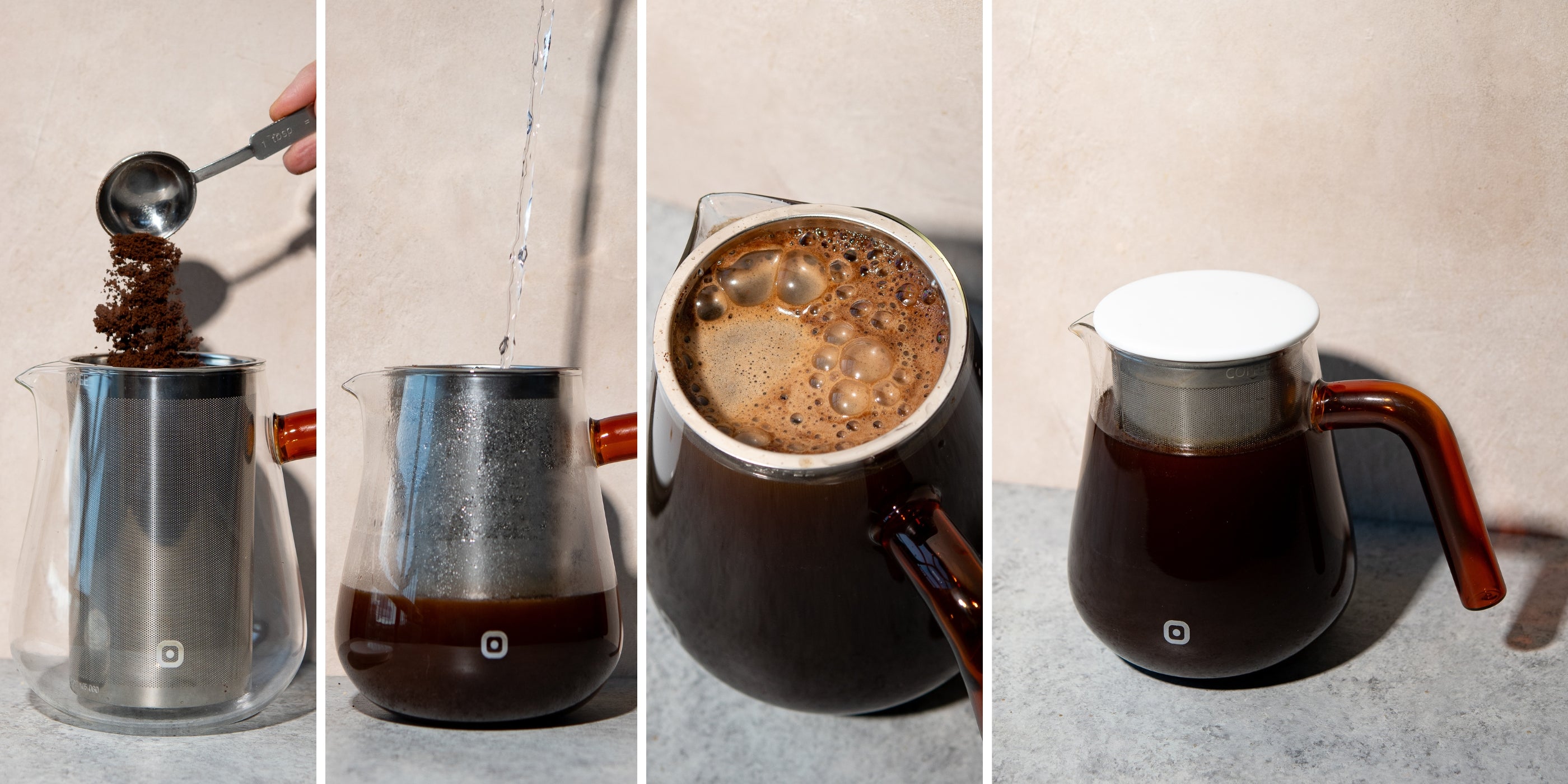 You are overcome by a longing for a good coffee. But everything you have ever had was too complicated - filter paper here, limescale there, and the fully automatic machine constantly needs attention. But now you have the solution: the Arca X-tract turns your little coffee ritual into pure pleasure. The scent alone puts you in the right mood: alone, in silence, just for you. Or with friends, excited to see what you are conjuring up: coffee like grandma loved. Back to the roots, no more whining machines. You bring the chic pot to the table or balcony, the aroma needs a few minutes to develop in the thick belly of the Arca. You can hardly wait. But the coffee is still too hot...